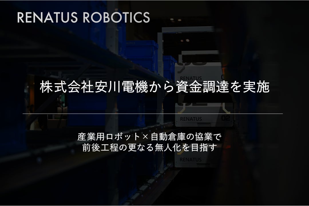 超高効率の自動倉庫を開発・提供するRENATUS ROBOTICS Inc.(レナトスロボティクス、San Francisco)は産業用ロボット・ACサーボモータにおける世界のリーディングカンパニーである株式会社安川電機(本社:福岡県北九州市から、SAFE型新株予約権の発行による資金調達を実施しました。当社の最先端の自動倉庫システム「RENATUS」と、安川電機の世界トップレベルの産業用ロボット、ACサーボモータのシナジーにより、倉庫の無人化に向けた協業を進めます。